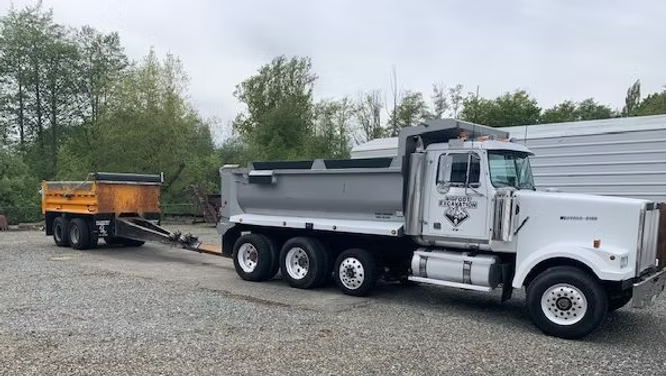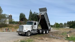 – We offer dump trucking.– We have accounts with all the aggregate and topsoil suppliers.– We offer hourly rates and per load rates.– We truck 4 axle solo or truck and pup.– High lift gate dump body.